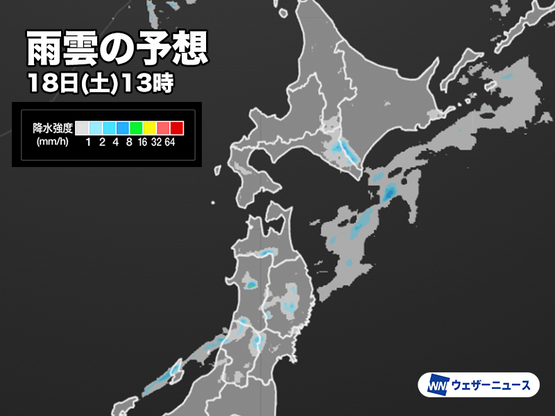 北海道や東北北部は雲の多い空で、雷を伴った強い雨の降る可能性があります。落雷や突風、降雹にも注意が必要です。