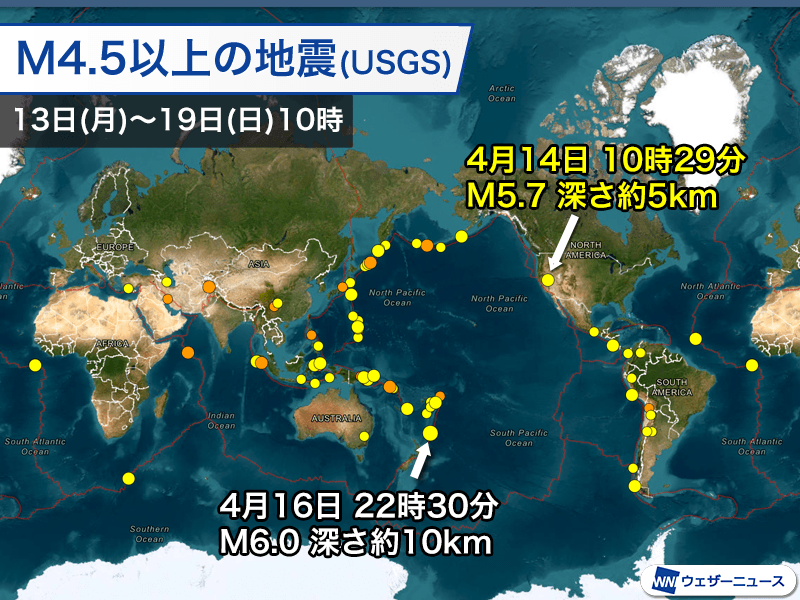 今回はアメリカ・ネバダ州の地震に注目します。日本時間の14日(火)朝にアメリカ・ネバダ州を震源とするマグニチュード5.7、深さ約5kmと推定される地震が発生しました。