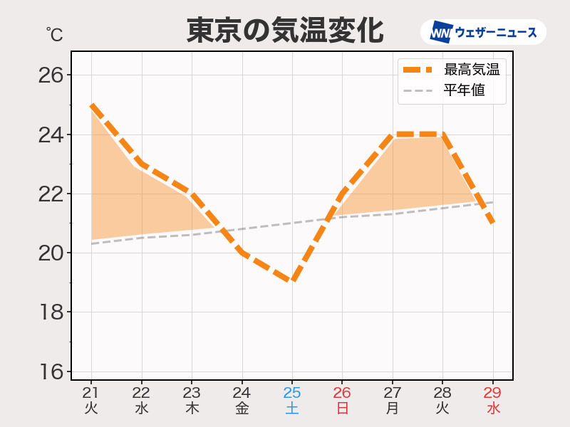 西日本や東日本を中心に、平年より気温の高い日が多くなる見込みです。日中は20℃を超える陽気が続き、特に日差しが届く日は汗ばむこともありそうです。