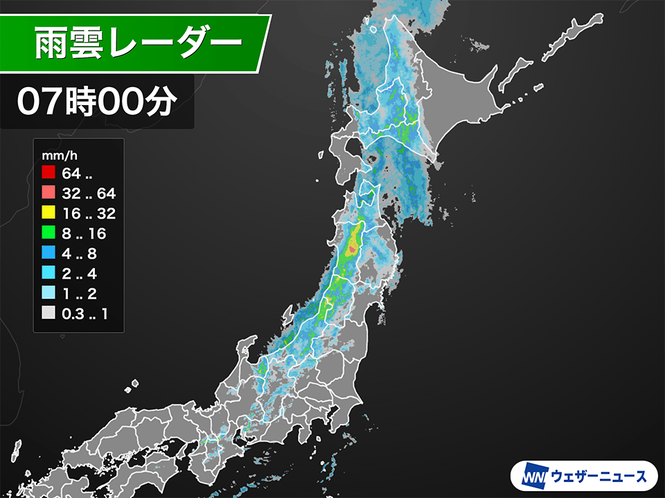 午前中は東北や北陸などで一時的に土砂降りの雨になる可能性があるため注意してください。