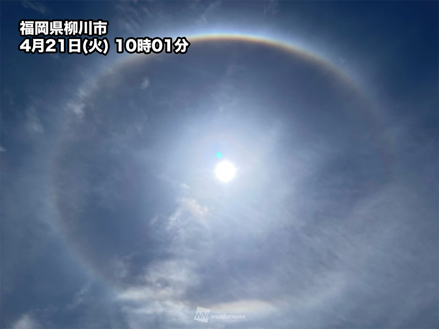 九州で楕円形の虹色「外接ハロ」が出現 天気が崩れる心配はなし