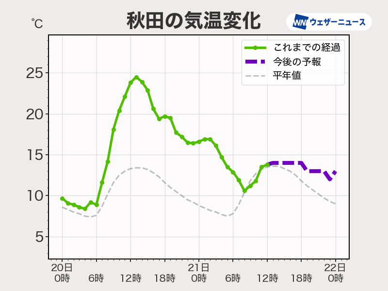 ・東京:21.5℃(-2.5℃)