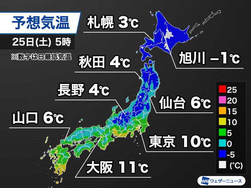 25日(土)は朝の冷え込みに注意