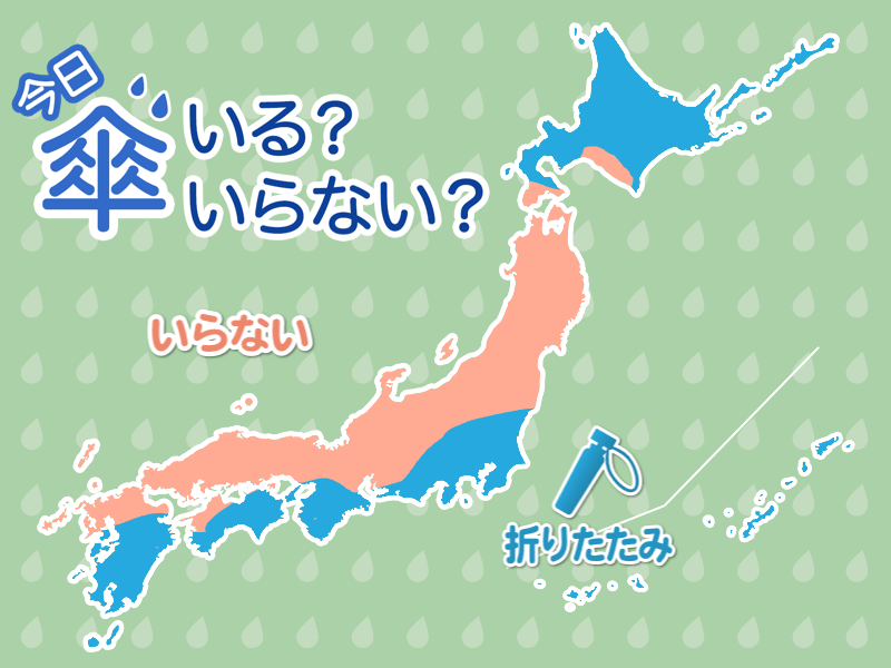 東日本や西日本も太平洋側を中心ににわか雨の可能性があり、関東から近畿では午前にかけて、四国や九州では午後ほど降りやすくなる見込みです。
