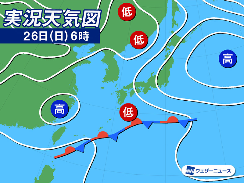 一方、西日本ではスッキリしない空が続きます。引き続き、低気圧に近い九州や四国の太平洋側では、1時間に20mmを超えるような強い雨に注意が必要です。