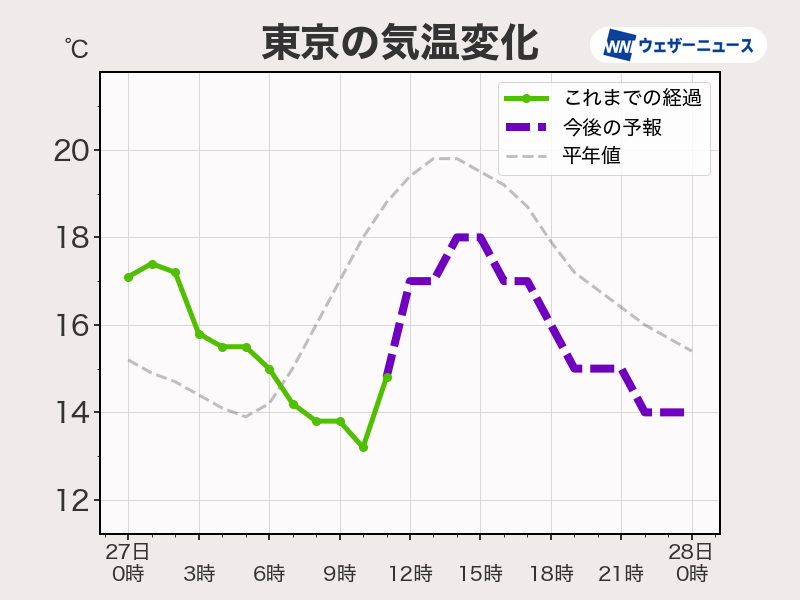 関東や北陸、東北は気温が上がりにくく、最高気温は15〜17℃前後のところが多くなります。関東を中心に北風が強めに吹き、昼間も空気が冷たく感じられそうです。外出の際は、雨具に加えて羽織るものがあると安心です。