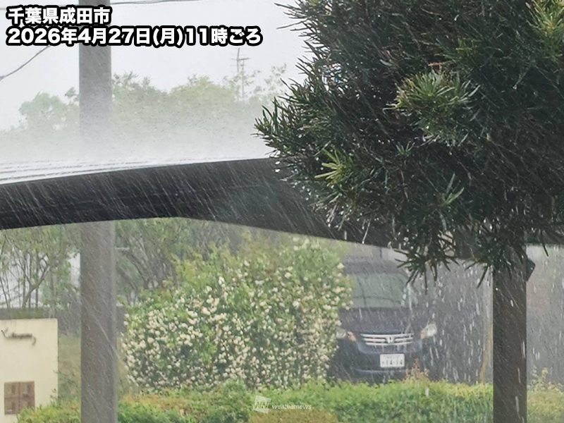 今日27日(月)は東日本の南海上を低気圧が東進し、東日本や東北南部で広く雨が降っています。関東では発達した雨雲が通過し、通勤通学時間帯は土砂降りの雨となりました。