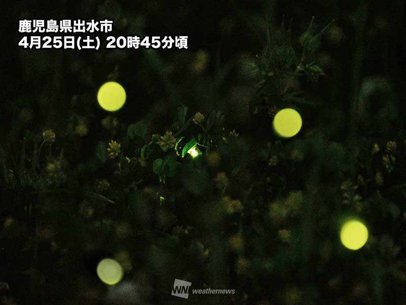 4月後半になって、鹿児島県や宮崎県、熊本県といった九州の一部でも蛍が出現しているようです。