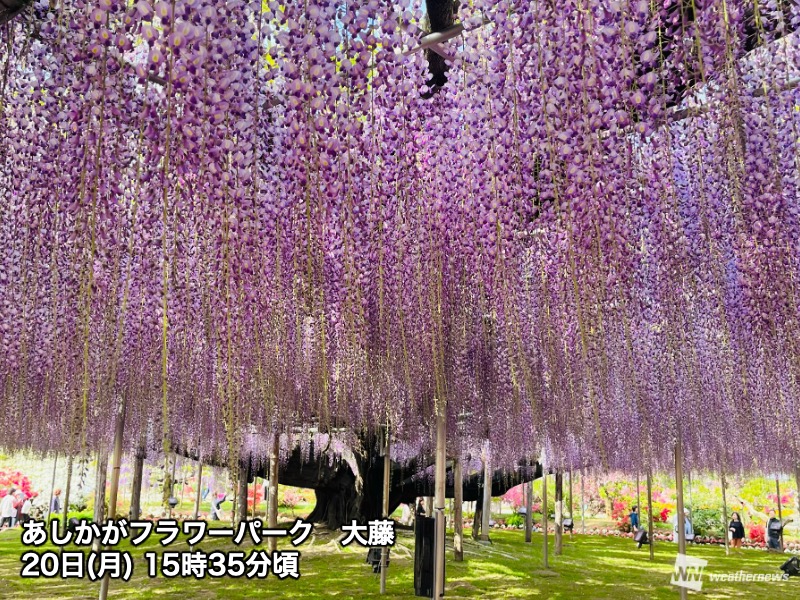 また、この先は天気が周期変化ながら雲が多めの日が続く見込みです。ゴールデンウィーク中に藤の見頃が過ぎてしまう可能性も高いため、早めに見に行くのがおすすめです。