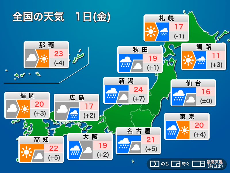今日5月1日(金)の天気予報