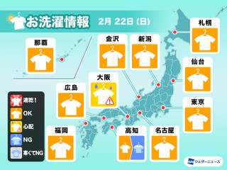 気温が低いため洗濯物の乾きが非常に遅く、凍結のリスクもあります。外干しは難しい予想です。