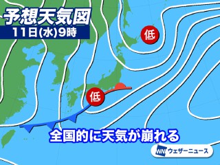 天気痛の発症リスクがやや高く、敏感な方は軽い症状を感じる可能性があります。