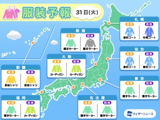 明日の天気 3月31日 (火)