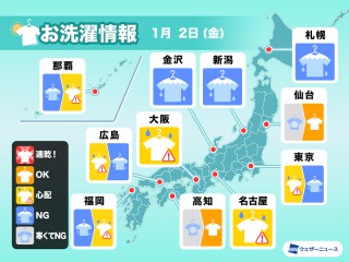 気温が低いため洗濯物の乾きが非常に遅く、凍結のリスクもあります。外干しは難しい予想です。