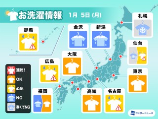 気温が低いため洗濯物の乾きが非常に遅く、凍結のリスクもあります。外干しは難しい予想です。