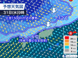 気温が低いため洗濯物の乾きが非常に遅く、凍結のリスクもあります。外干しは難しい予想です。