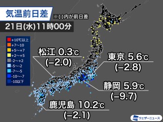 | 21時 | -0.3 | 2 | 北 | 0 | 0 |