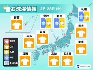 気温が低いため洗濯物の乾きが非常に遅く、凍結のリスクもあります。外干しは難しい予想です。