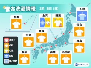 気温が低いため洗濯物の乾きが非常に遅く、凍結のリスクもあります。外干しは難しい予想です。