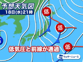 天気痛の発症リスクがやや高く、敏感な方は軽い症状を感じる可能性があります。