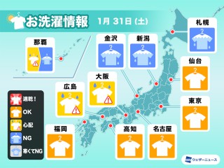 気温が低いため洗濯物の乾きが非常に遅く、凍結のリスクもあります。外干しは難しい予想です。