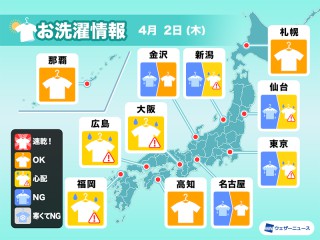 気温が低いため洗濯物の乾きが非常に遅く、凍結のリスクもあります。外干しは難しい予想です。