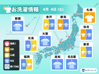 雨が降って乾きにくく、外干しは難しい予想です。部屋干しか、別の日をおすすめします。