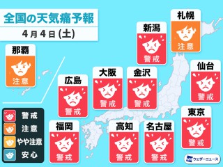 天気痛の発症リスクがやや高く、敏感な方は軽い症状を感じる可能性があります。