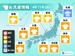 気温が低いため洗濯物の乾きが非常に遅く、凍結のリスクもあります。外干しは難しい予想です。
