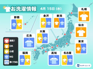 気温が低いため洗濯物の乾きが非常に遅く、凍結のリスクもあります。外干しは難しい予想です。