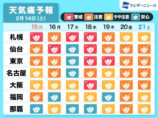 天気痛の発症リスクがやや高く、敏感な方は軽い症状を感じる可能性があります。