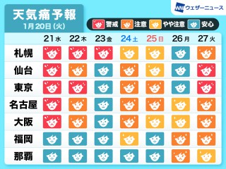 天気痛の発症リスクがやや高く、敏感な方は軽い症状を感じる可能性があります。