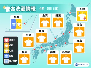 気温が低いため洗濯物の乾きが非常に遅く、凍結のリスクもあります。外干しは難しい予想です。