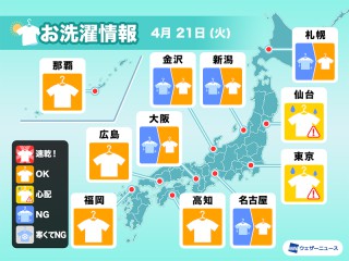 気温が低いため洗濯物の乾きが非常に遅く、凍結のリスクもあります。外干しは難しい予想です。