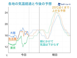 雨が降って乾きにくく、外干しは難しい予想です。部屋干しか、別の日をおすすめします。
