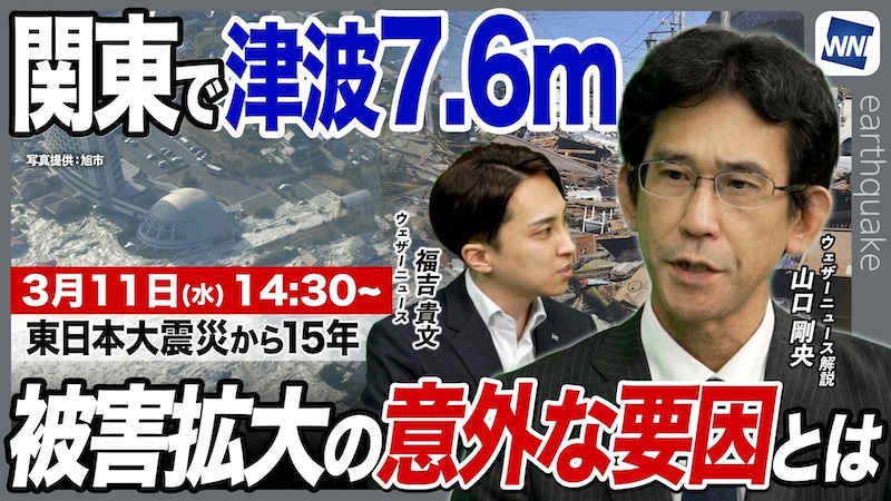 気象予報士の山口剛央が、東北で起きた地震がなぜ関東にまで広がり、旭市に局地的かつ甚大な被害をもたらしたのか、そのメカニズムと脅威について詳しく解説します。