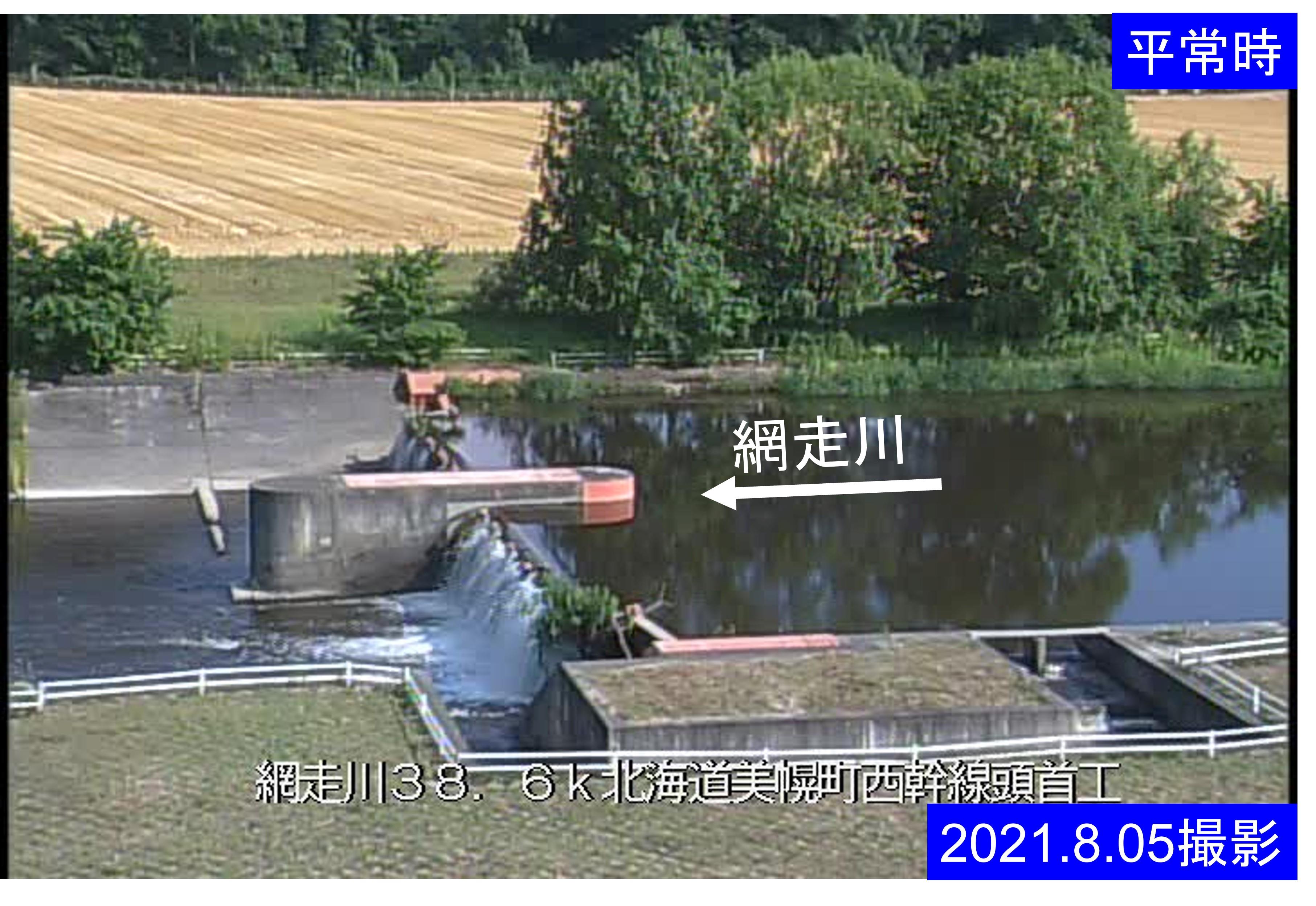 網走川 38.6kp 西幹線頭首工周辺の河川ライブカメラ