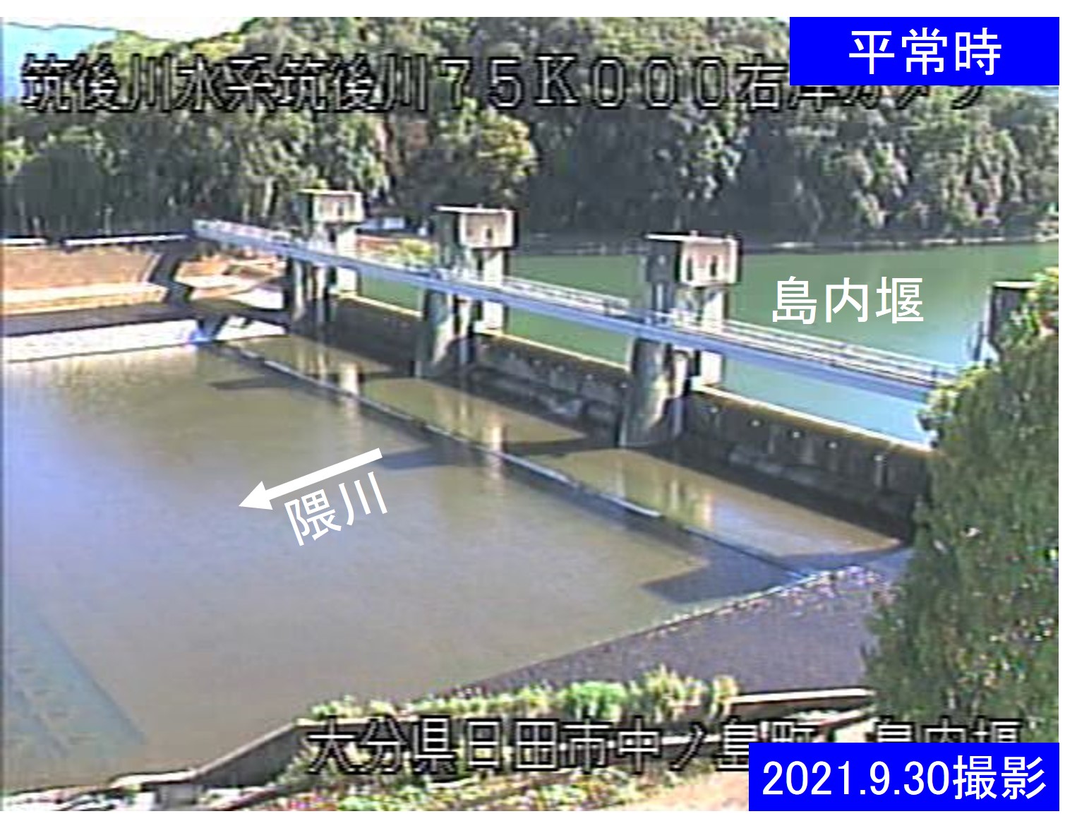 筑後川75K000右岸島内堰操作室周辺の河川ライブカメラ