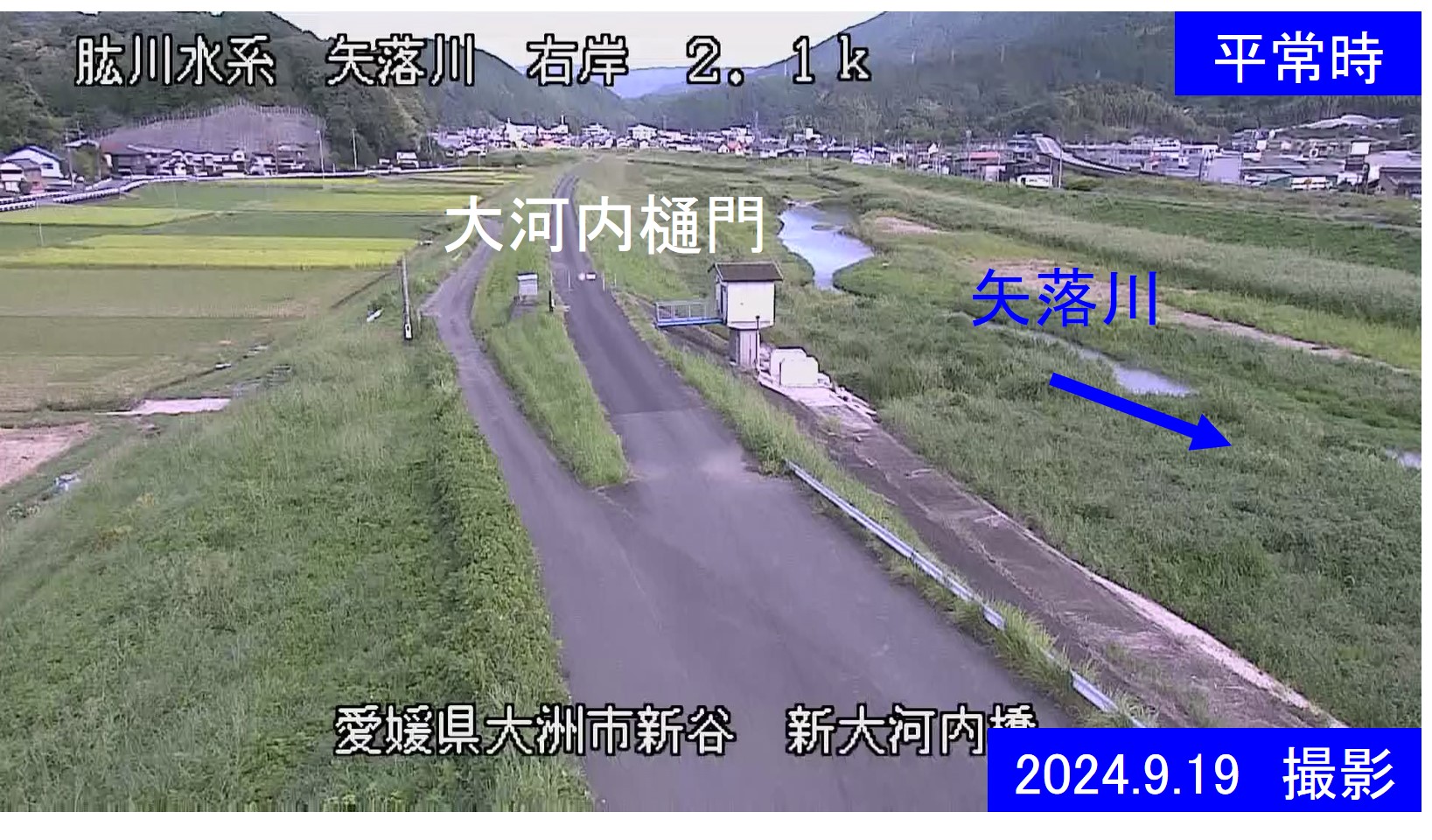 矢落川右岸2.1k 大洲市 新大河内橋周辺の河川ライブカメラ