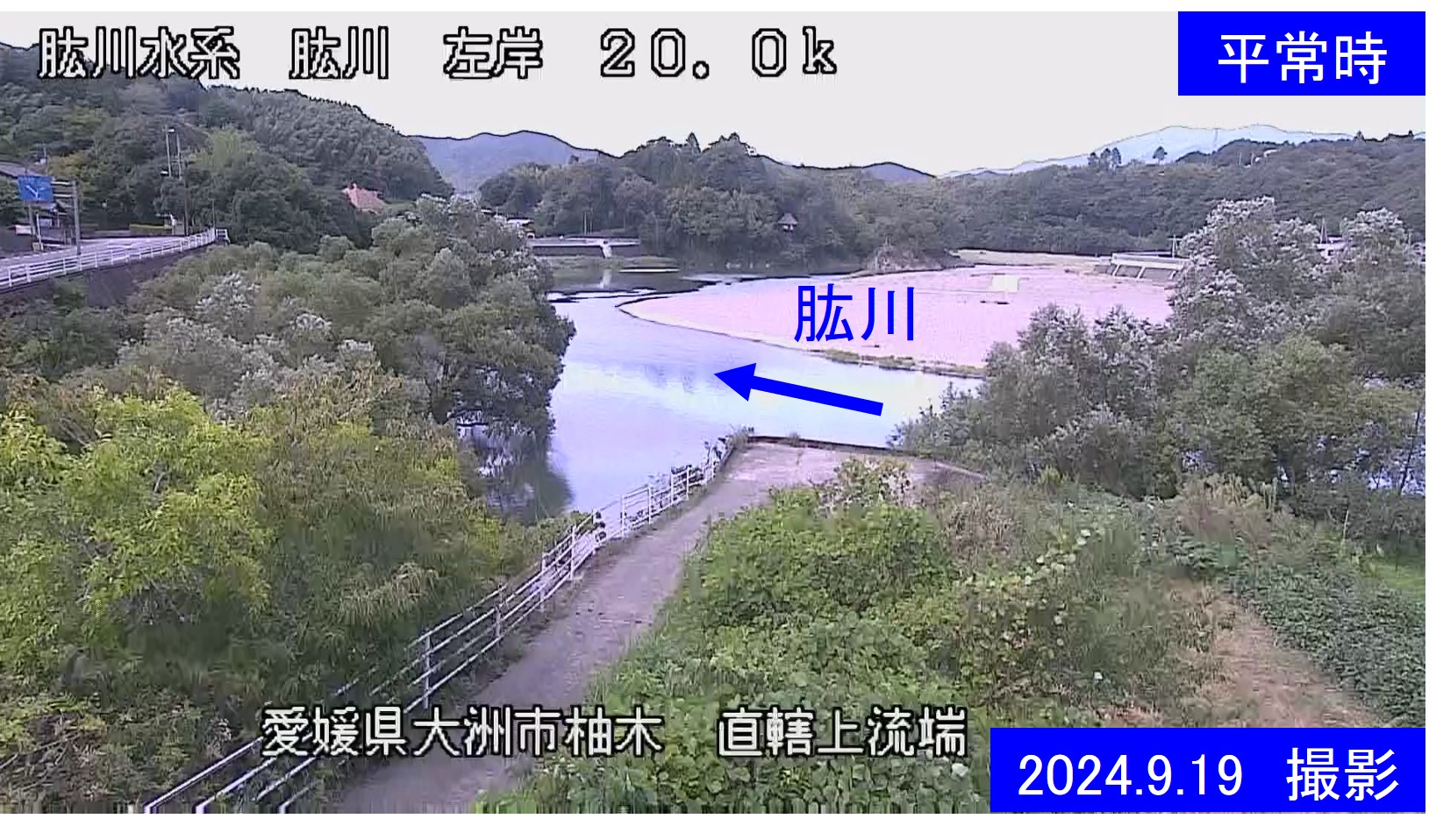 肱川左岸20.0k 大洲市 柚木周辺の河川ライブカメラ