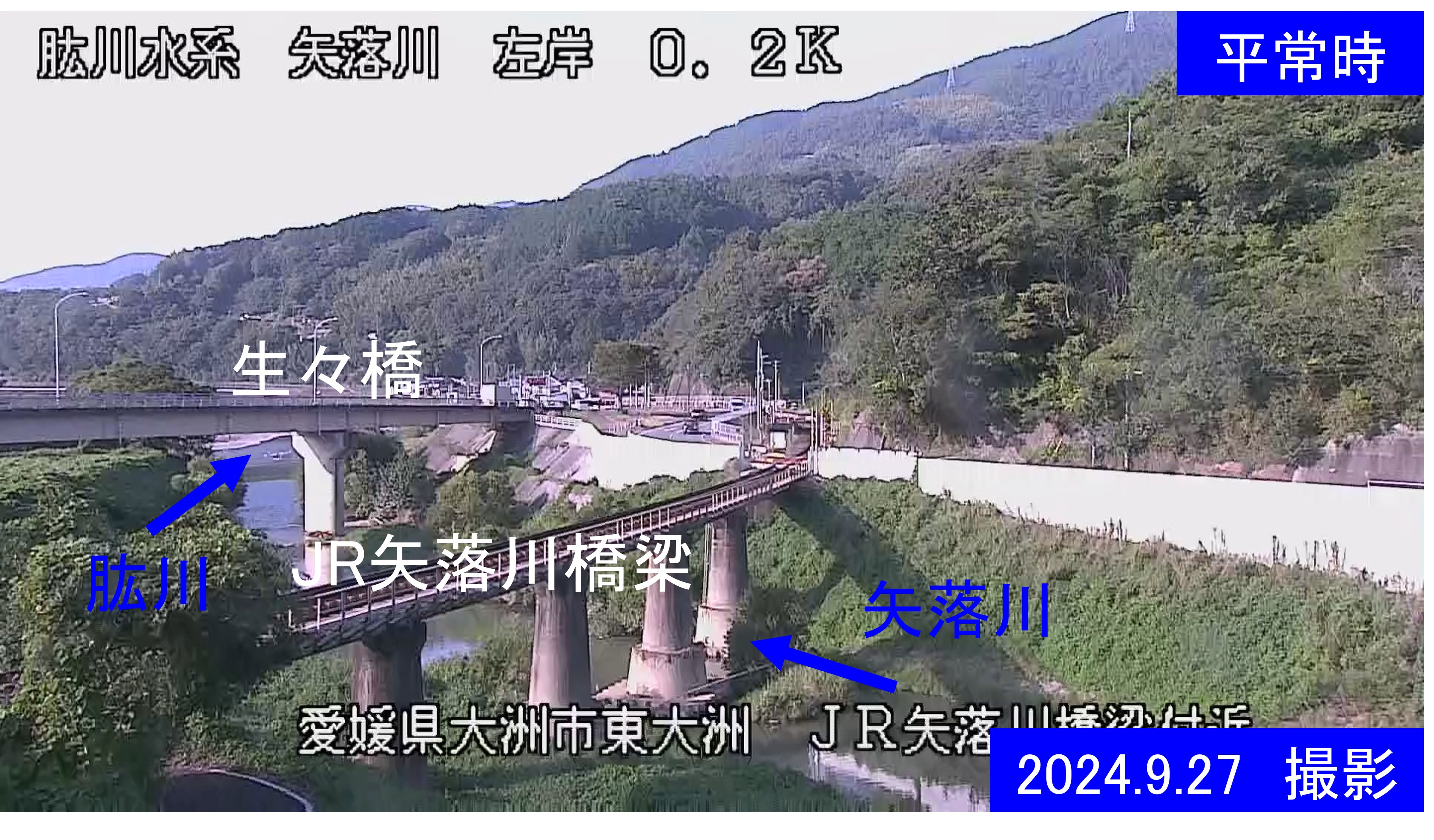 矢落川左岸0.2k 大洲市 JR矢落川橋梁付近周辺の河川ライブカメラ