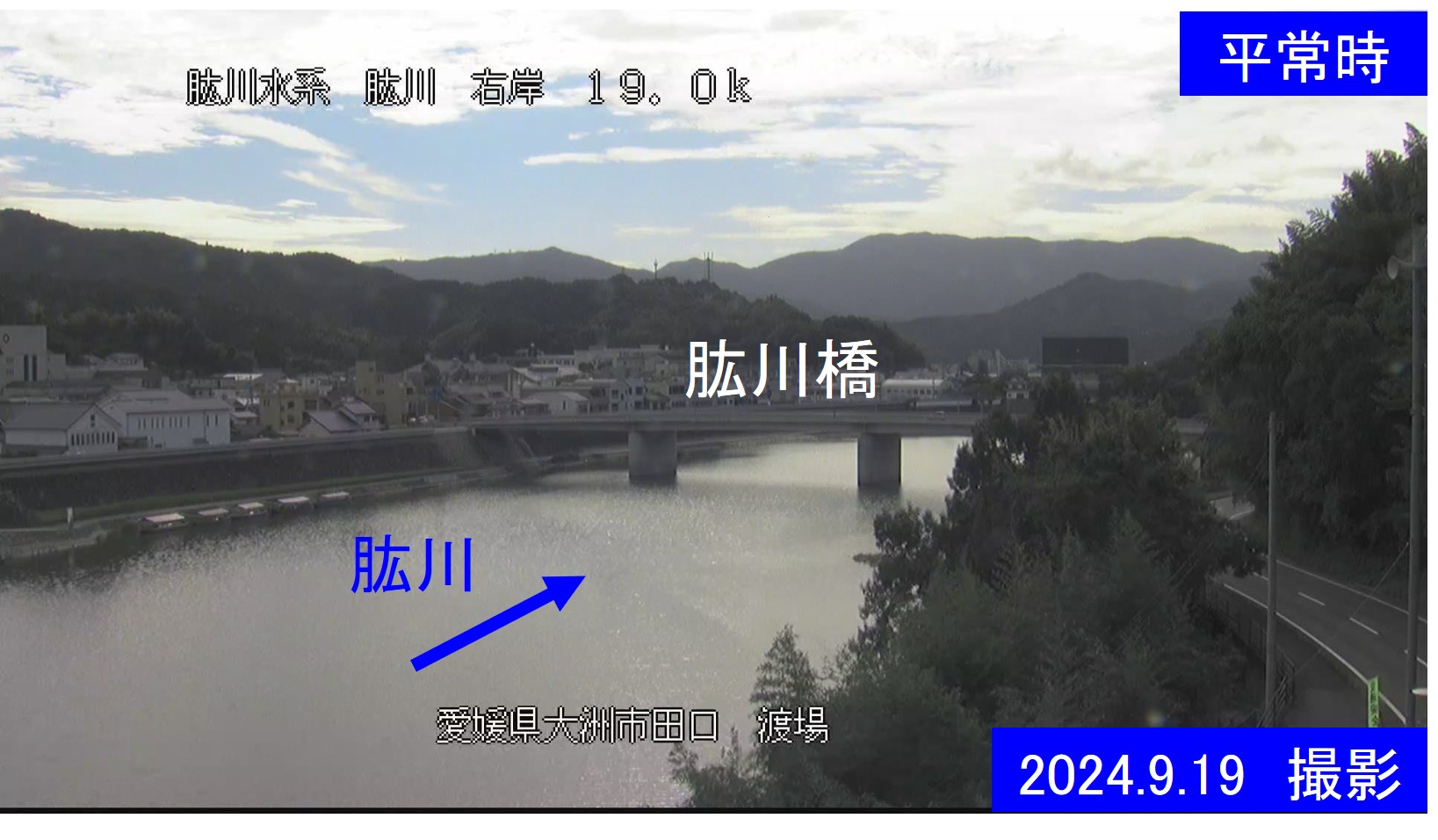 肱川右岸19.0k 大洲市 渡場周辺の河川ライブカメラ