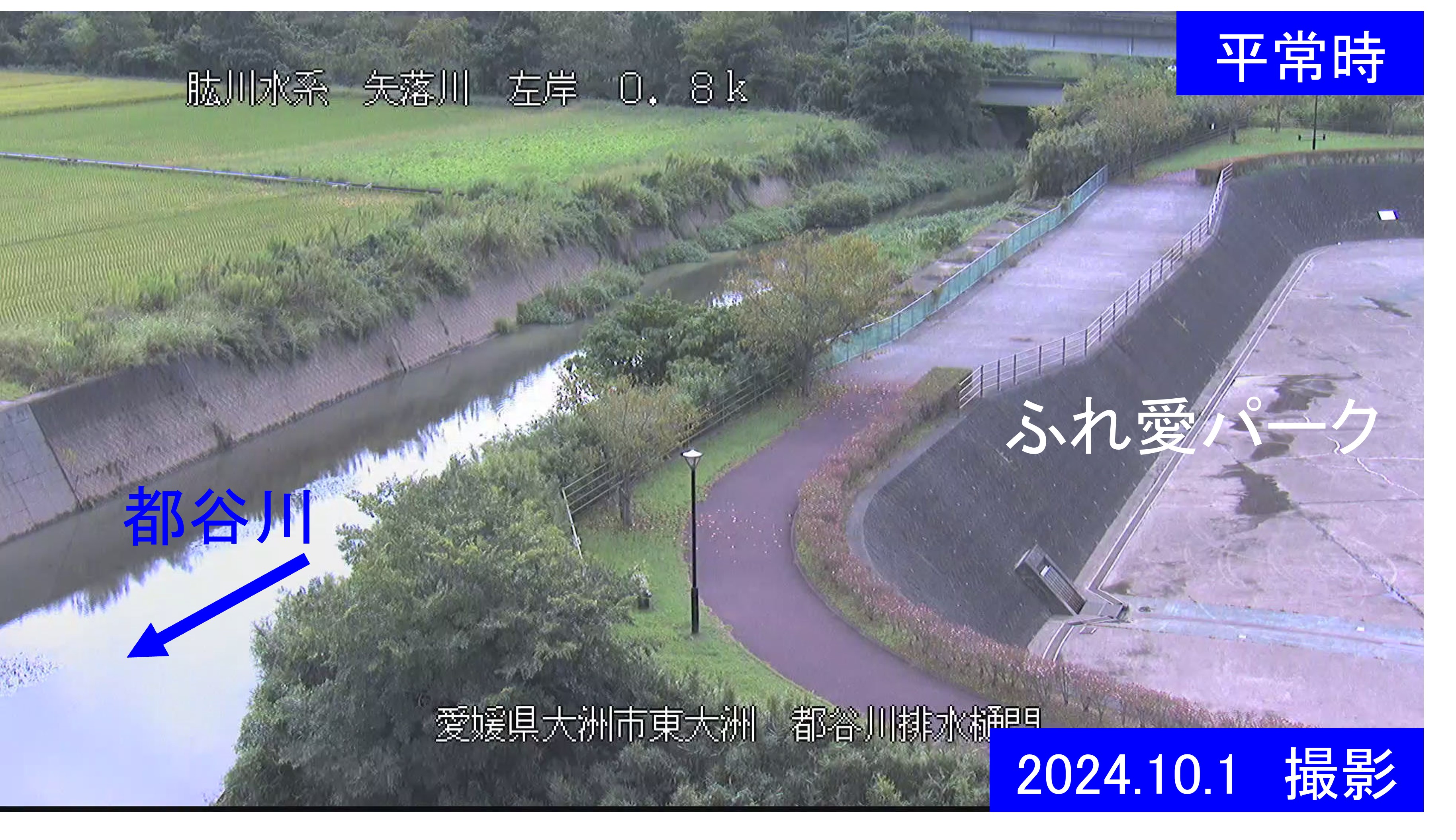 矢落川左岸0.8k 大洲市 都谷川排水樋門周辺の河川ライブカメラ