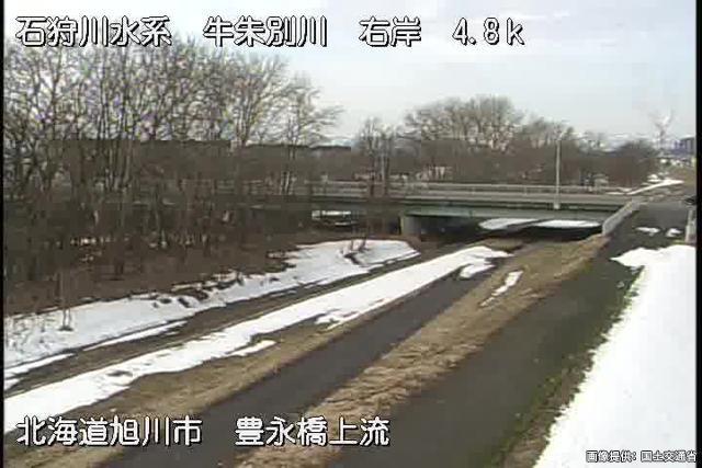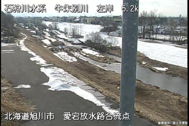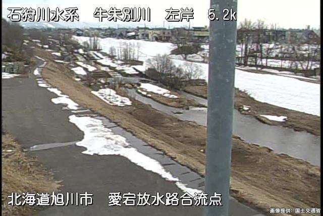牛朱別川 KP5.2 愛宕放水路合流点周辺の河川ライブカメラ
