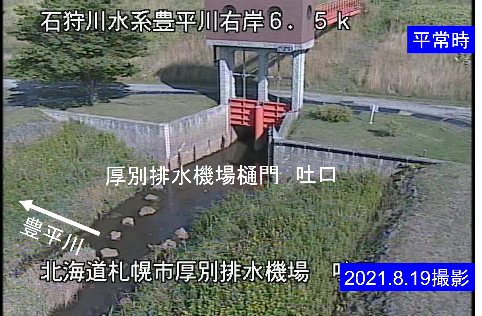 豊平川 6.5kp 厚別排水機場 吐口周辺の河川ライブカメラ