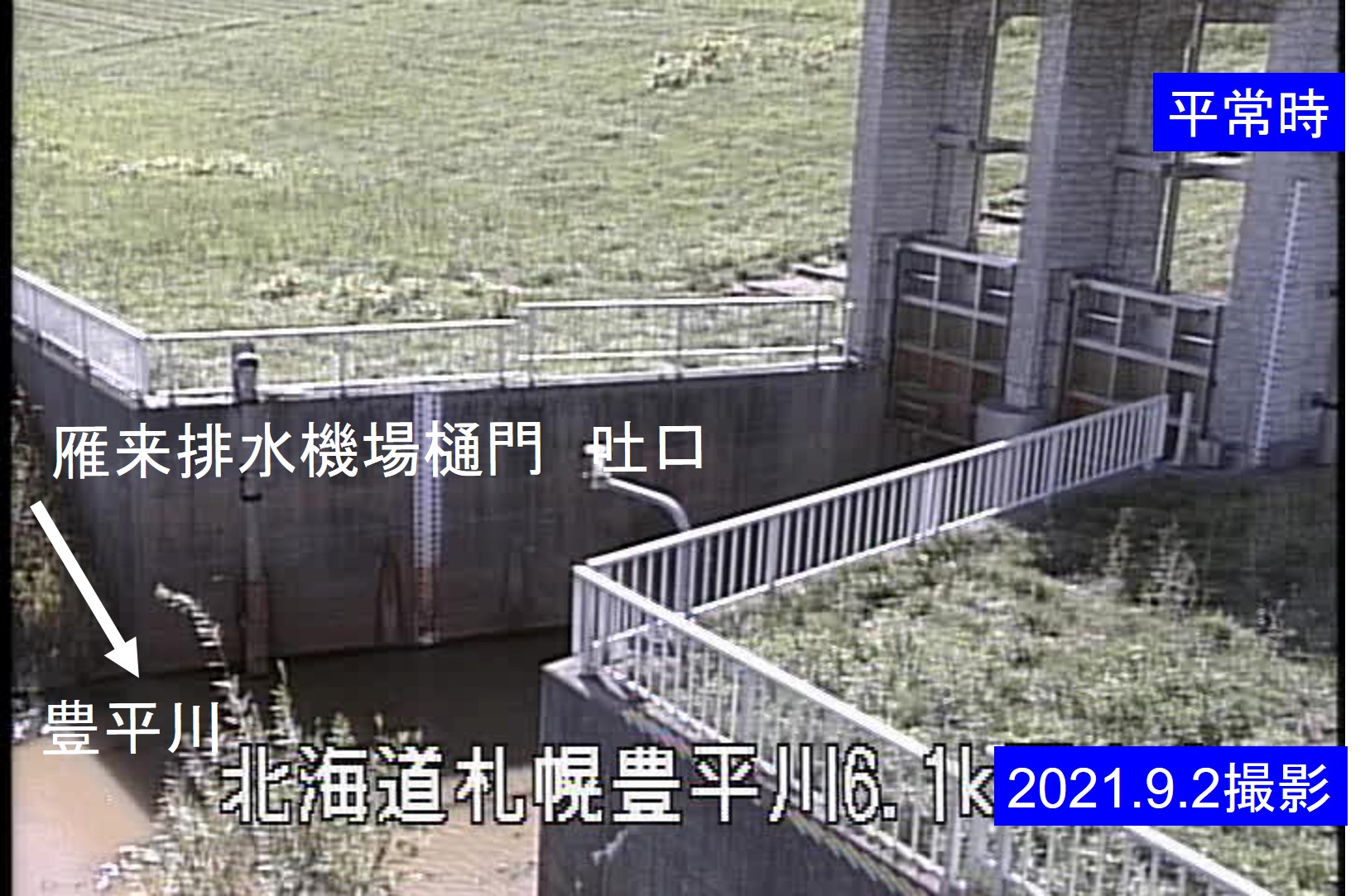 豊平川 6.1kp 雁来排水機場 吐口周辺の河川ライブカメラ