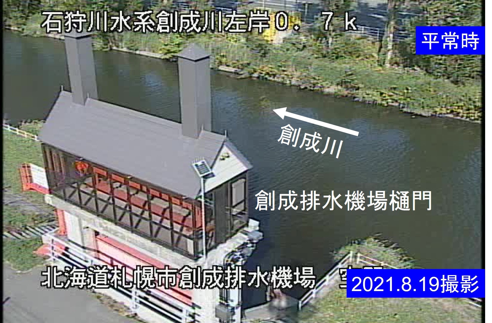 創成川 0.7kp 創成排水機場 空間周辺の河川ライブカメラ