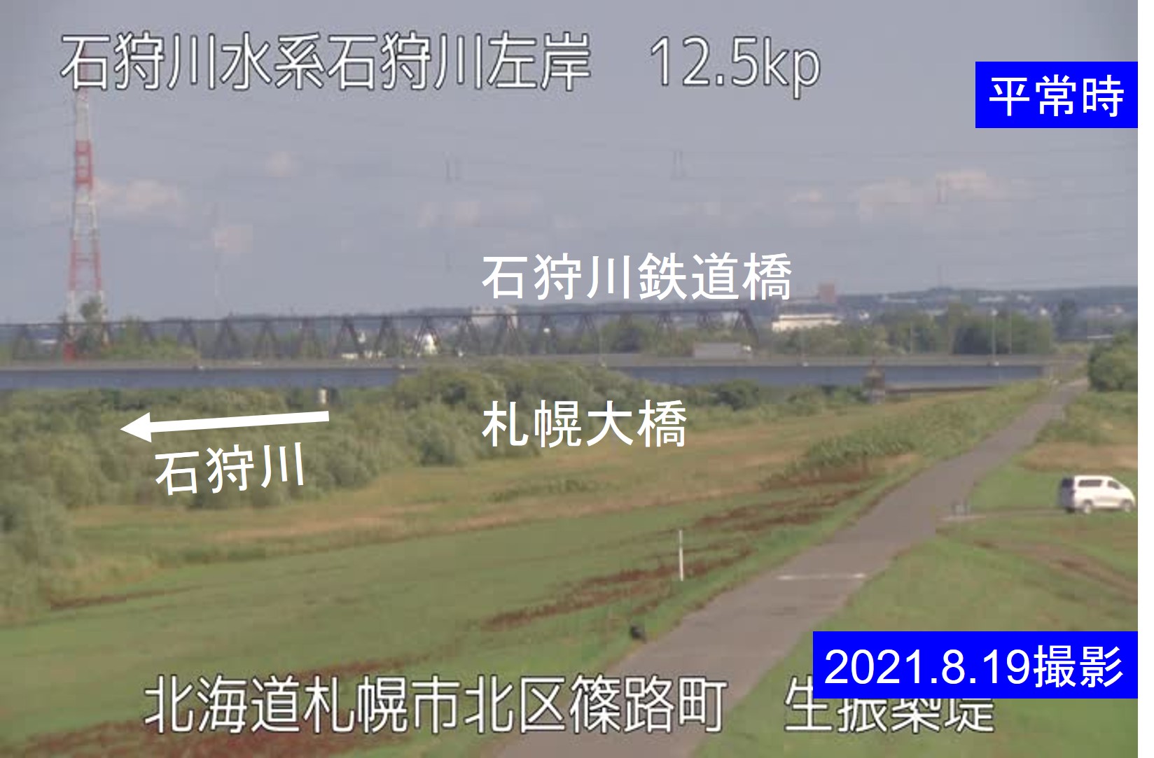 石狩川 12.5kp 生振築堤周辺の河川ライブカメラ