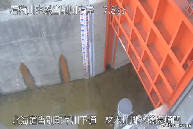 当別川 7.8kp 材木川排水機場樋門周辺の河川ライブカメラ