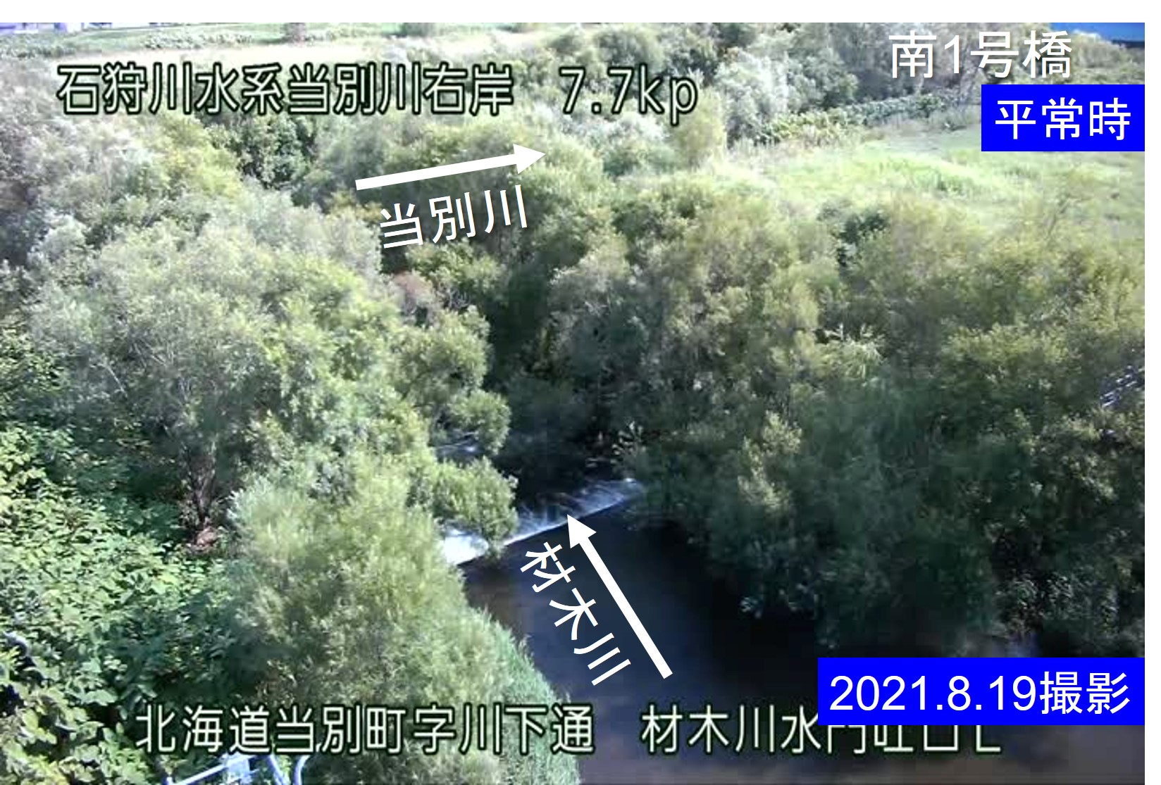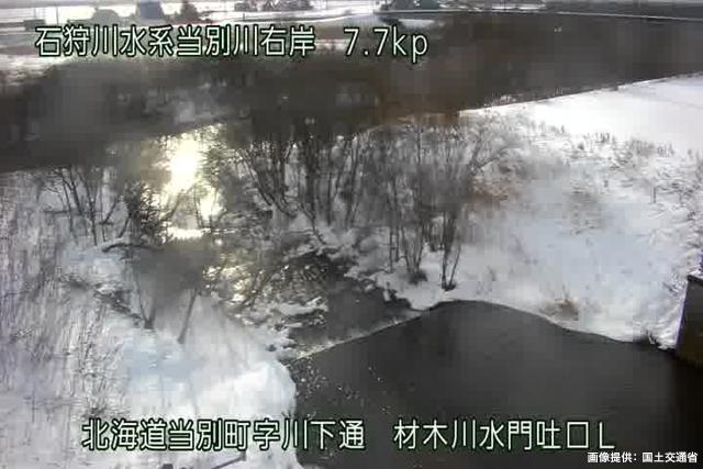 当別川 7.7kp 材木川水門吐口L周辺の河川ライブカメラ